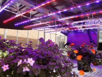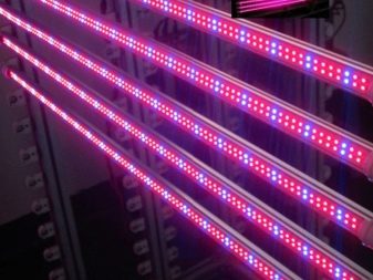 Оранжерийното осветление с LED ленти ви позволява бързо и правилно да изберете необходимата мощност. Можете да избирате разновидности в един или два реда диоди с желания тон и интензивност въз основа на необходимата им обща мощност. Тези крушки са малки и дори компактни, но доста мощни и ярки. Те практически не се нагряват по време на работа, те могат да функционират при ниско напрежение.