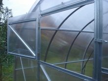 Ако се закупи готова оранжерия, това е предвидено в чертежите, където ще бъдат разположени прозорците. Проектантите вече са предвидили изобилието от валежи и други фактори, които трябва да се вземат предвид в региона. Понякога на покрива се прави дупка, но страничната вентилация се счита за еднакво ефективна. Тъй като топлият въздух е концентриран под тавана, направените там отвори са по -ефективни. С странично подреждане те разделят приблизително височината на три части и монтират конструкцията, отстъпвайки от земята с 2/3.