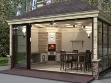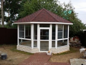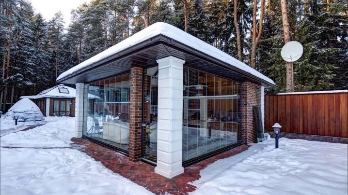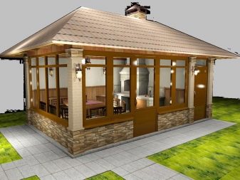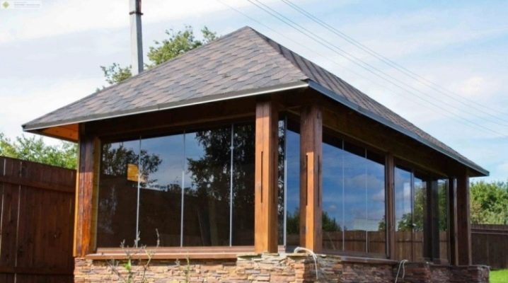 Експертите препоръчват при проектирането по -задълбочен подход към въпроса за назначаването при проектирането на остъклени беседки. Например, опцията с барбекю не предвижда големи панорамни прозорци и стени. В този случай основният строителен материал трябва да бъде материал с огнеупорни свойства (например тухла или камък).