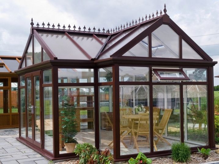 В същото време прозорците често са декорация за беседки, различаващи се по профил с имитация на скъпи естествени материали (например камък или благородни видове дърво).