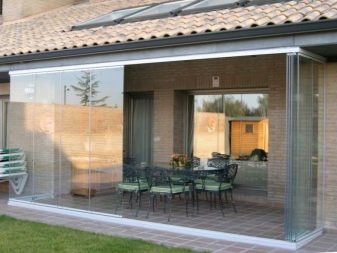 Това остъкляване на беседки осигурява рационално използване на вътрешното пространство. Плъзгащите механизми ви позволяват да направите престоя си в беседката по -удобен. Ако е необходимо, такива стени или врати могат да бъдат сгънати, превръщайки затворена сграда в полузатворена конструкция. Този метод е вариант на студения тип.