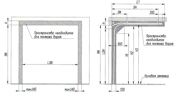 Отворът и стените са разположени строго в една и съща равнина. За да се постигне това, стените и таванът в гаража са измазани.