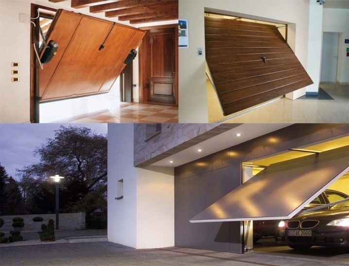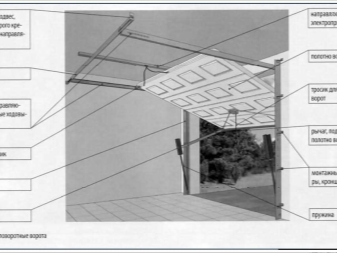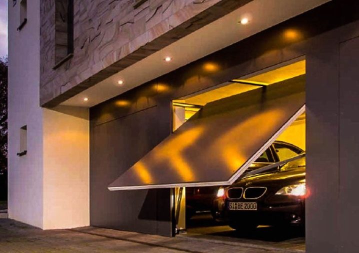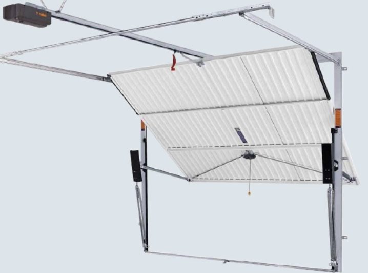 При отваряне крилото на крилото заема хоризонтално положение и се издига до тавана. Механизмът се задвижва от пружини, ролки и водачи. Последните определят положението на портата, прехвърляйки ги от хоризонталната във вертикалната равнина и обратно..