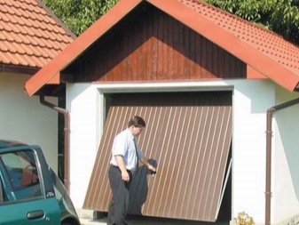 - Платното е плътно, когато е затворено, то е плътна стена. Също така много често в него е вградена блокираща система, което допълнително увеличава устойчивостта на взлом. В допълнение, използването на такъв тип декор като „фалшива“ стена прави портата почти невидима от улицата, което също затруднява проникването в гаража..