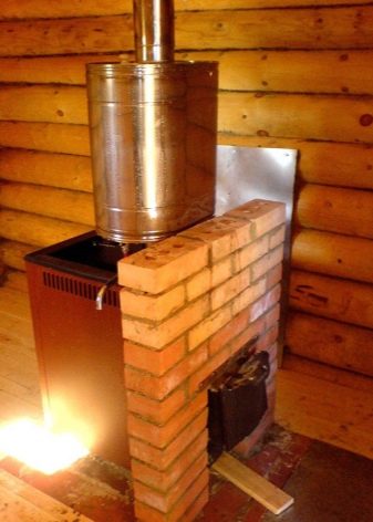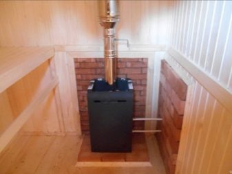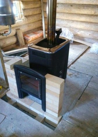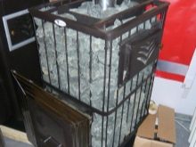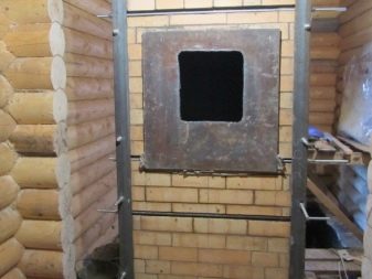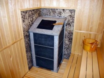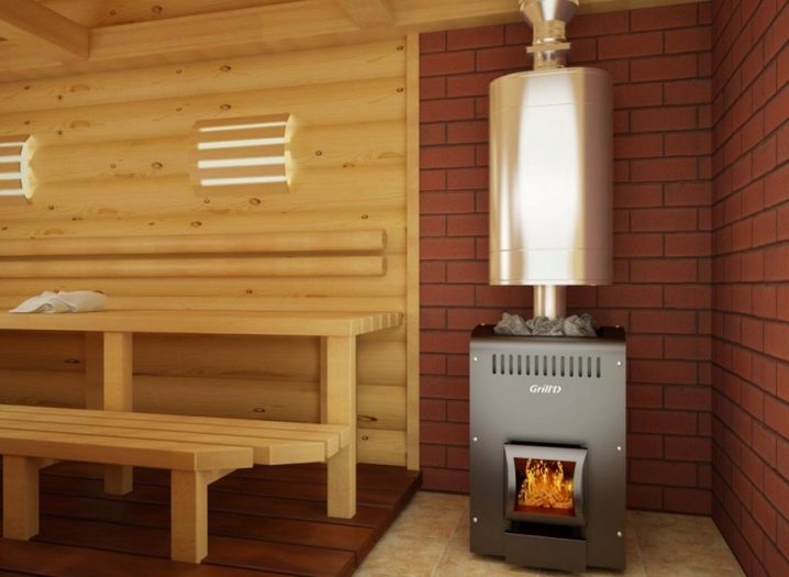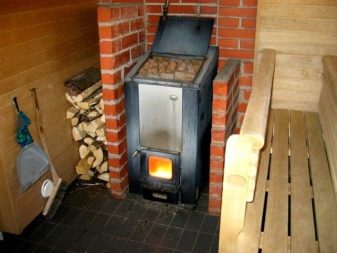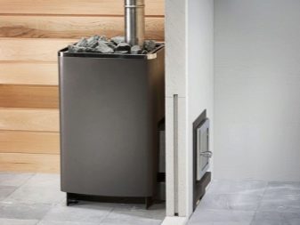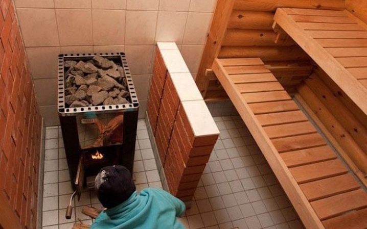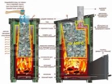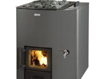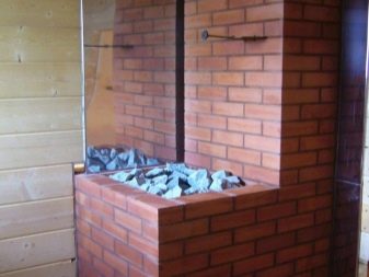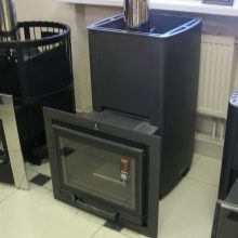 Печка с такъв дизайн дава възможност да се отвори достъп за хвърляне на дърва за огрев в съблекалнята и в същото време да се поставят нагрети камъни в парна баня.