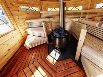 Днес производителите ни предлагат не само стандартни квадратни или правоъгълни печки на дърва, но и по-оригинални оформени и цилиндрични образци. Въпреки това, преди да закупите такива модели, трябва да се уверите, че те се вписват в оформлението на вашата парна баня, както и да й отговарят по размер..