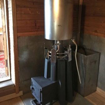 Дървените печки могат да имат различни видове резервоари за вода. Така че моделите с дистанционни резервоари се считат за най -удобни за използване. Често резервоарът е инсталиран в душ ъгъла на ваната. В допълнение, тези единици могат да имат голямо разнообразие от размери..
