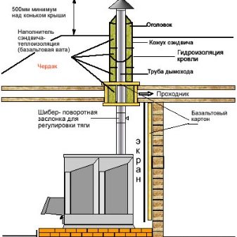 Инсталирането на устройства с отдалечена камина е малко по -трудно.. Трябва да се има предвид, че е невъзможно да се остави удължена горивна камера в стена от трупи, без предварително да се осигури допълнителна топлоизолация.. Разстоянието между тавана и горната част на комина трябва да бъде най -малко 50 см. Повърхността трябва да бъде изолирана с помощта на материал, който е силно устойчив на високи температури. Това предотвратява образуването на големи количества конденз..