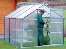 По -здрава и издръжлива е конструкцията от поликарбонат. Той е лек и може лесно да се монтира върху подготвена рамка. Такава оранжерия може да бъде с различни размери, до впечатляващи площи..