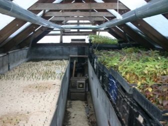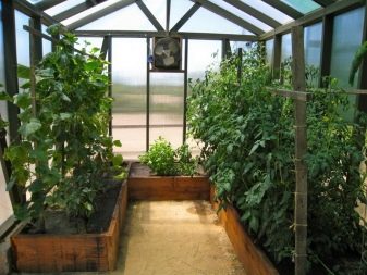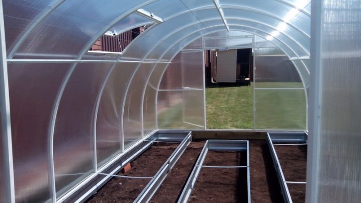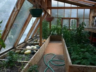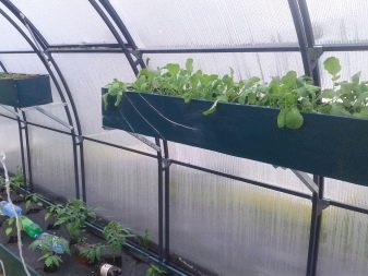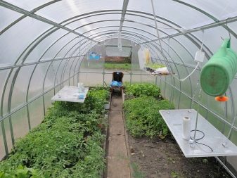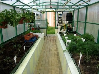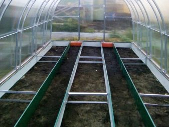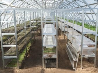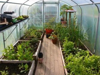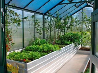 Също така, пространството в оранжерията може да бъде организирано за различни начини за отглеждане на растения. Ако се предполага, че се отглежда в земята, тогава леглата са подредени. Ако отглеждането на растения ще се извършва в саксии, кутии или контейнери, ще е необходим монтаж на стелажи.