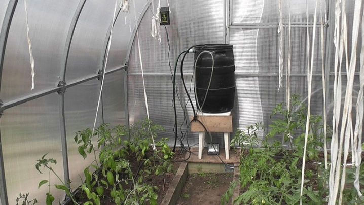 В случай на отглеждане на растения и култури в структура със затворен терен, не е необходимо да се разчита на естествени валежи. Следователно поливането на насажденията трябва да се организира от себе си. В малка оранжерия е напълно възможно да се направи с лейка. Но всички растения, засадени в структури с голяма площ, не са толкова лесни за поливане на ръка. Най -добрият вариант за поливане на растения в оранжерии е система за капково напояване. За да го оборудвате, ще ви трябва контейнер за водоприемник, пластмасови тръби и гъвкави маркучи..