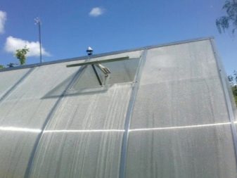 - Един от тях е стикер върху поликарбонатни листове от вътрешната страна на надлъжни ленти от широка лепяща лента. Разстоянието между ивиците не трябва да надвишава десет сантиметра. В случай на големи маси сняг, силно заледяване, усилване на вятъра, надлъжните ивици спомагат за равномерното разпределение на товара върху цялата площ на външното покритие на оранжерията.