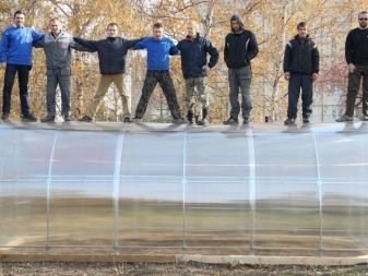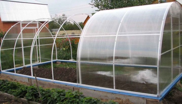 - “Семейство”. Класическият дизайн на такъв модел е “Арката”. Ширината на конструкцията е три метра, височината е два метра, разстоянието между дъгите е 0.65 метра. Дизайнът включва два края с врати и вентилационни отвори. Вътрешният поликарбонат е с дебелина четири или шест милиметра..