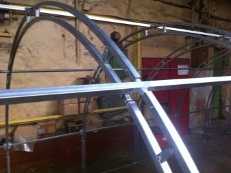 Вместо канал или ъгъл, надлъжен носещ лъч може да бъде направен от тръба чрез заваряване на уши, зъбни колела или други крепежни елементи към нея. Според съветите на опитни производители на зеленчуци в Урал и Далечния Изток се препоръчва поликарбонатната носеща арка на оранжерията да бъде направена от алуминиев канал или профил. Това гарантира стабилността на конструкцията при пориви на вятъра. Такава подсилена оранжерия може да издържи пориви на вятъра от 25-30 метра в секунда и снежно налягане до 240 килограма на квадратен метър..