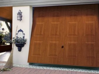 Въпреки привидната липса на разнообразие, гаражните врати могат да бъдат изработени от различни материали, всеки от които има своите предимства и недостатъци. Металът винаги се взема като основа, но може да бъде облицован с дърво. Трябва да се има предвид, че при декориране на порта не може да се използва плътен масив. Това ще добави допълнително тегло към и без това тежката конструкция. По -добре да се даде предпочитание на подплатата.