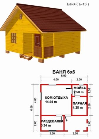 Банята 6х6 метра надеждно предпазва от ниски температури и лошо време. На вътрешната основа неговата полезна площ е 25 квадратни метра, докато верандата е 8 квадратни метра, парната баня е 7 квадратни метра, пералнята е 6 квадратни метра, а съблекалнята е 4 квадратни метра. Тези размери са приблизителни и отразяват общата тенденция. И също така много производители произвеждат стандартни вани, които могат да бъдат сглобени на сайта. Цената на такива обекти започва от 450 хиляди рубли.