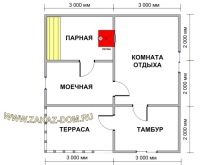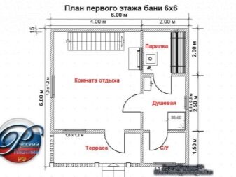 Не е трудно да планирате площ от 6х6 метра за баня. В самата парна баня е оборудвана мивка; се прави печка на дърва или електрическа печка. Широки дървени рафтове, чиито размери са не по -малко от петдесет сантиметра, се избиват от бара. Тоалетната трябва да се намира до тоалетната. Съблекалнята традиционно е заделена за битовия блок, дърва за огрев и въглища, в нея се съхраняват аксесоари за баня и можете също да се преобличате в нея..