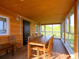 Наличието на веранда е важен момент в икономиката на сауната. Верандата може да бъде добро място за туристите да се събират през топли или дори студени сезони. Стените на терасата могат да бъдат изолирани, прозорците с двоен стъклопакет могат да бъдат монтирани в отворите на прозорците. Терасата на приземния етаж през лятото може ефективно да предпази от дъжд.