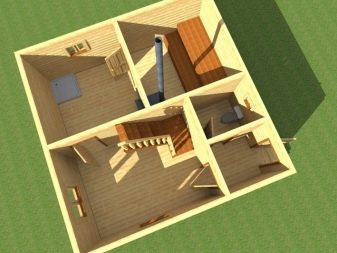 Стаите са проектирани по индивидуален проект, всеки собственик знае по -добре колко хора ще почиват едновременно, как най -добре да планират стая за релакс и парна баня. За по -рационално оформление на дървената къща се използват някои традиционни техники. Печката е разположена близо до стената, която е в непосредствена близост до ъгловата стая за почивка. В този случай не трябва да забравяме за пожарната безопасност. Дупката в пещта обикновено се показва в съблекалнята.