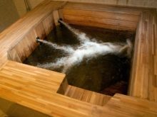 - Хидромасаж горещите вани не са предназначени за плуване, но можете да си починете добре в тях. Инсталирането на конструкцията няма да отнеме много време, тъй като тя се продава готова. Друго предимство на спа басейните е тяхната компактност, което е важно за малките сауни.