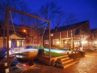 Банските комплекси често се проектират, като се вземат предвид желанията на възрастните. Но има много интересни идеи, които предвиждат организацията на свободното време на децата. За да предотвратите скуката на децата, можете да оборудвате детска площадка. За да направите това, достатъчно е да поставите пясъчник, люлка, въртележка и хамак близо до беседката или тавана. А за безопасно плуване трябва да закупите надуваем басейн за деца, в който децата могат да се пръскат весело, докато възрастните плуват с голям шрифт..
