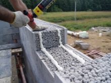 - Бетонни блокове се състои от вода и пясъчно-циментова смес. Те имат дълъг експлоатационен живот и достъпна цена. Клетъчните бетонни блокове са лесни за монтаж, устойчиви на екстремни температури и влажност и имат ниска топлопроводимост. И благодарение на тяхната структура е възможно да ги изрежете със собствените си ръце. Говорейки за недостатъците на бетонните блокове, трябва да се отбележи, че това е много студен материал, така че ще трябва да бъде изолиран. Бетонните блокове имат висока степен на поглъщане на влага, което затруднява довършителните работи.