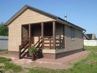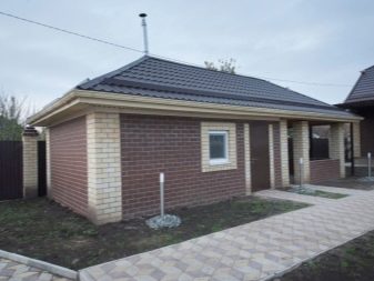- Тухлени бани може да служи повече от 50 години. Тухлата има универсална форма, не се страхува от огън и не изисква външно довършване. Но този материал е по -скъп от дървени или пеноблокове и има висок коефициент на топлинен капацитет, което причинява сериозен разход на гориво за отопление на помещението..