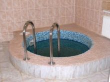 - Хидромасаж горещите вани не са предназначени за плуване, но можете да си починете добре в тях. Инсталирането на конструкцията няма да отнеме много време, тъй като тя се продава готова. Друго предимство на спа басейните е тяхната компактност, което е важно за малките сауни.
