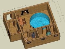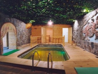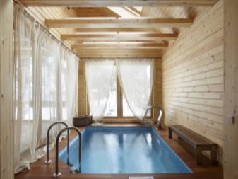 Според експерти е по -правилно да се оборудва басейнът в баня от дървена къща. При нагряване дървесината е способна да произвежда смоли и етер, чието вдишване има положителен ефект върху човешкото здраве. За изграждането на сграда за сауна иглолистните дървета са най -подходящи, тъй като имат лечебни свойства..