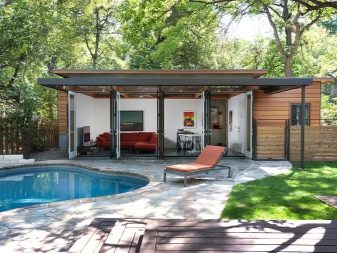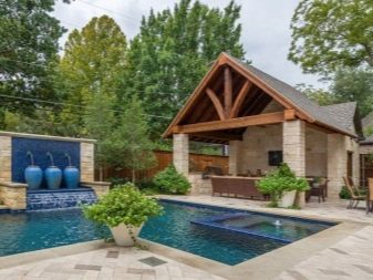 Сградата за баня може да има различни дизайни, които ще вземат предвид местоположението на басейна. Тя може да бъде вътре в парната баня, на чист въздух, под беседка или в съседна стая..