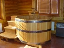 По -добре е да инсталирате горещата вана в стая, изградена от профилирани греди или трупи. А печката трябва да бъде разположена в центъра на конструкцията, така че пространството да се нагрява равномерно.
