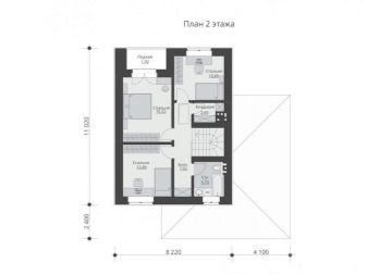 Жилищен втори или тавански етаж трябва да бъде планиран така, че да побира баня и една или двойка спални. Важен елемент е залата, чиято площ трябва да бъде от 22 кв. м. И в него можете да оборудвате отлично място за съвместен отдих, например кино или друга всекидневна. Спалните могат да бъдат направени със същия размер или различни. Ако в семейството има малко деца, тогава е по -добре да вземете една от стаите за офис.