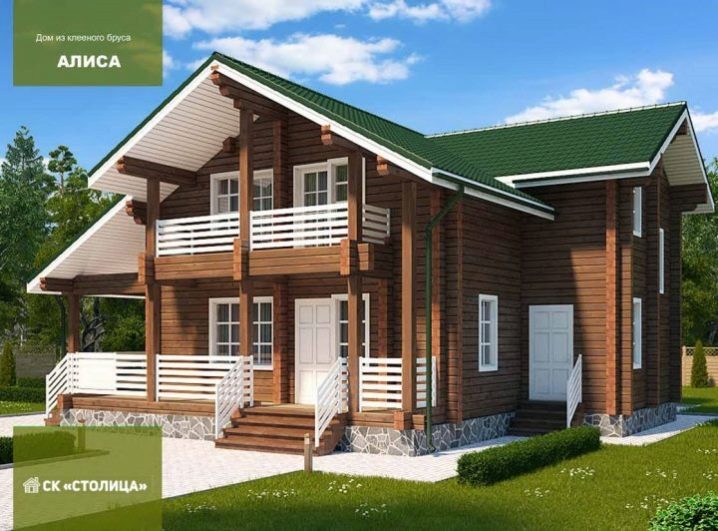 Проект, наречен “Алиса” с площ над 220 кв. m се откроява с яркозеления си покрив, комбиниран с фасада от тъмно дърво. Централният елемент на основния етаж е холът, който обединява всички останали помещения. Удобен момент в оформлението е местоположението на резервоара на кухнята и трапезарията, както и гардеробната по -близо до преддверието. Вторият етаж е запазен за 4 спални с изглед към коридора, банята и тоалетната.