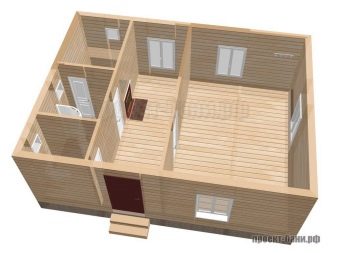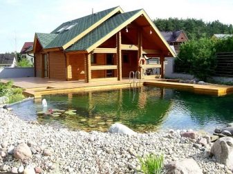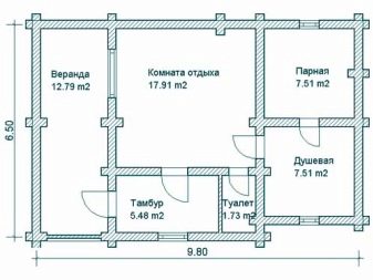 За лятна вила най-добрият вариант би бил едноетажна къща с вана. Половината за баня е предназначена за няколко души или вашето семейство. Тук те подреждат пералня, баня, парна баня. Удобен за проектиране на вестибюл, стая за чай, малък басейн.
