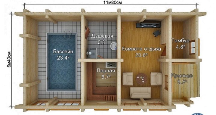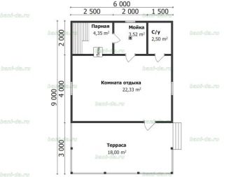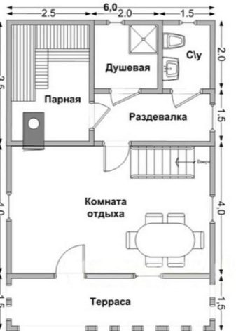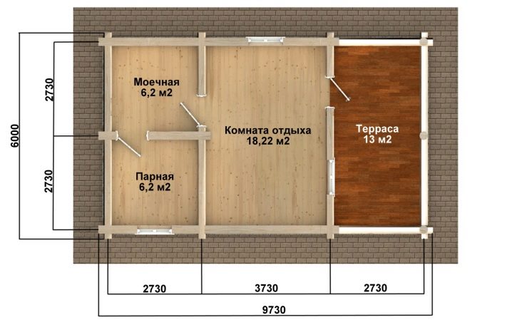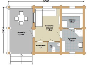 Проектът за баня 6 на 9 е сериозна здрава конструкция. Вътрешната зона може да бъде проектирана по ваш вкус, включително основните функционални зони, добавяйки по ваша преценка стаи за отдих и комфорт. Цената на строителството обаче нараства значително в сравнение с проекти с по -малка площ. Банята с площ 6х9 м е идеална за голямо семейство. Без съмнение, комплекс за баня с този размер ще ви помогне да решите най -смелите си мечти и идеи..