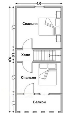 Удобно е да поставите антре и две спални на втория етаж.. Най -приемливият вариант на повдигащата конструкция е стълбище за полет. Удобно е да планирате входа към спалните на втория етаж от стаята за отдих. От спалните има изход към залата, а след това към балкона. По -добре е стаите да се поставят успоредно, отколкото последователно..