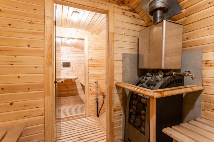 Добра компактност, собствениците получават капацитета от двуетажната баня. Тук има всичко за почивка и релакс. Например, първият етаж е зает от баня, стая за отдих, тераса, вестибюл, пералня и парна баня. Вторият етаж е най -добре използван за жилищни помещения. Ако печката е монтирана към обща стена между парната баня и стаята за отдих, тогава топлината ще бъде навсякъде.