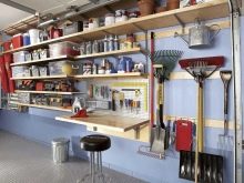 Чифт стелажи 2х0,5 м изглеждат относително малки, но когато се поставят отстрани, те ще разширят сградата със 100 см. Работна маса или работна маса с помощно оборудване ще заемат 6 квадратни метра. м, а същото място трябва да се остави за безпрепятствен подход към работната зона.