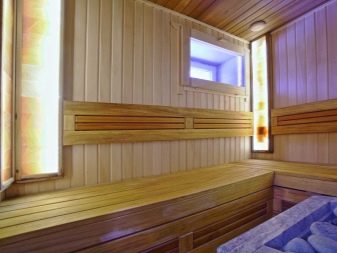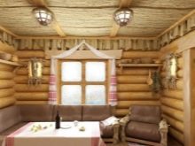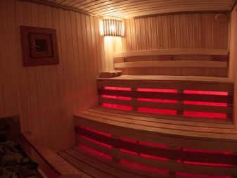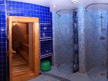 - Светлината във ваната е подредена в зависимост от стаята. В парната баня осветлението е затъмнено, така че нищо не пречи на спокойното отпускане. В пералнята се поставя ярка лампа, осветлението на съблекалнята и стаята може да бъде декорирано по ваш вкус.