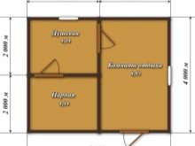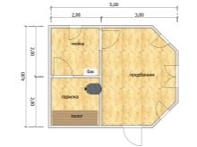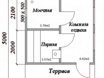 - Баня с съблекалня ви позволява да миете по всяко време на годината и е по -удобно да съхранявате дърва за огрев на входа. Отидете през малък коридор до стаята за релакс, след това до отделението за миене и до парната баня.