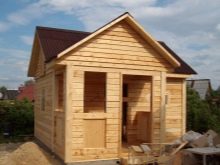- Дървените греди, изрязани от две или четири страни, са лесни за подреждане, което значително ускорява времето за изграждане. Леко свиване ви позволява веднага да започнете довършителни работи, сградата изглежда спретнато. Сериозните недостатъци на дървения материал включват запалимост и склонност към образуване на гъбички, такава баня се нуждае от вентилация и висококачествена дренажна система..