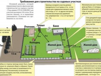 Често има спорове между летните жители относно местоположението на всякакви сгради. В крайна сметка е нереалистично да се поддържат разстоянията, установени и препоръчани от закона, на няколкостотин квадратни метра. Тук на помощ идват специални служби, местни администрации, издаващи документи с оптималното местоположение на стопански постройки. Сред санитарните помещения основните се открояват: