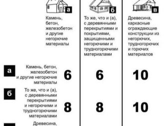 - IV категория представени от най -уязвимите материали. Това дърво и всички производни от него, които са импрегнирани, за да се предотврати запалването. Разстоянието им спрямо съседни територии не трябва да бъде по -малко от 12 метра.
