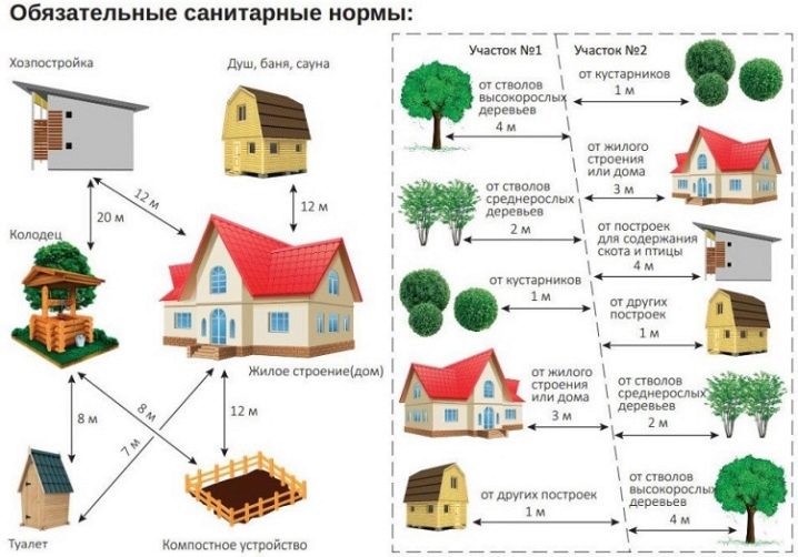 Често има спорове между летните жители относно местоположението на всякакви сгради. В крайна сметка е нереалистично да се поддържат разстоянията, установени и препоръчани от закона, на няколкостотин квадратни метра. Тук на помощ идват специални служби, местни администрации, издаващи документи с оптималното местоположение на стопански постройки. Сред санитарните помещения основните се открояват: