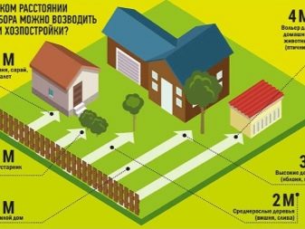 - навеси за отглеждане на добитък или птици не трябва да се намират по -близо до оградата от 4 м, подобно разстояние е предвидено за оранжерии, особено ако се планира да се използват органични торове при отглеждане на всякакви култури;