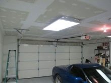 Когато планирате довършването на тавана и неговата изолация, не трябва да забравяте и за висококачественото осветление. Обикновено в гараж осветителните тела се монтират не само на тавана, но и на противоположните стени. Всяко такова устройство трябва да се включва и изключва отделно, за да отговаря на функционалността на помещението; не се препоръчва да се използва „носене“ в гаража.