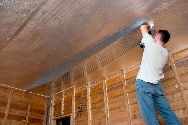 В случай на използване на пяна, върху материала трябва да се нанесе лепило. След това листът трябва да бъде залепен към тавана, закрепен с дюбели и всички празнини трябва да бъдат отстранени с помощта на полиуретанова пяна. След това можете да преминете към мазилка.