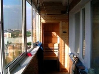 Балконът на апартамента може да бъде подреден като сауна. За да направите парна баня, не е нужно да изграждате рамка и да правите щайга – достатъчно е да украсите стените с дървени панели, да облицовате подовите и таванните повърхности и да инсталирате печка.