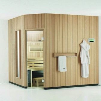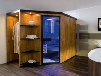Поставянето на сауна в една стая до голяма степен зависи от оформлението на стаята. Сред готовите конструкции можете да намерите както ъглови, така и монтирани на стена кабини. В определени случаи ще бъде по -целесъобразно сами да си направите парна баня..