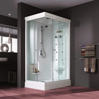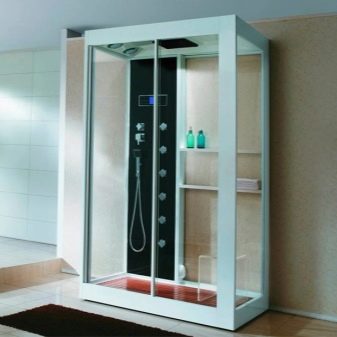Кабините са изработени от високоякостна пластмаса, а преградите могат да бъдат направени от стъклени блокове. Що се отнася до парата, тя може да бъде суха или мокра..